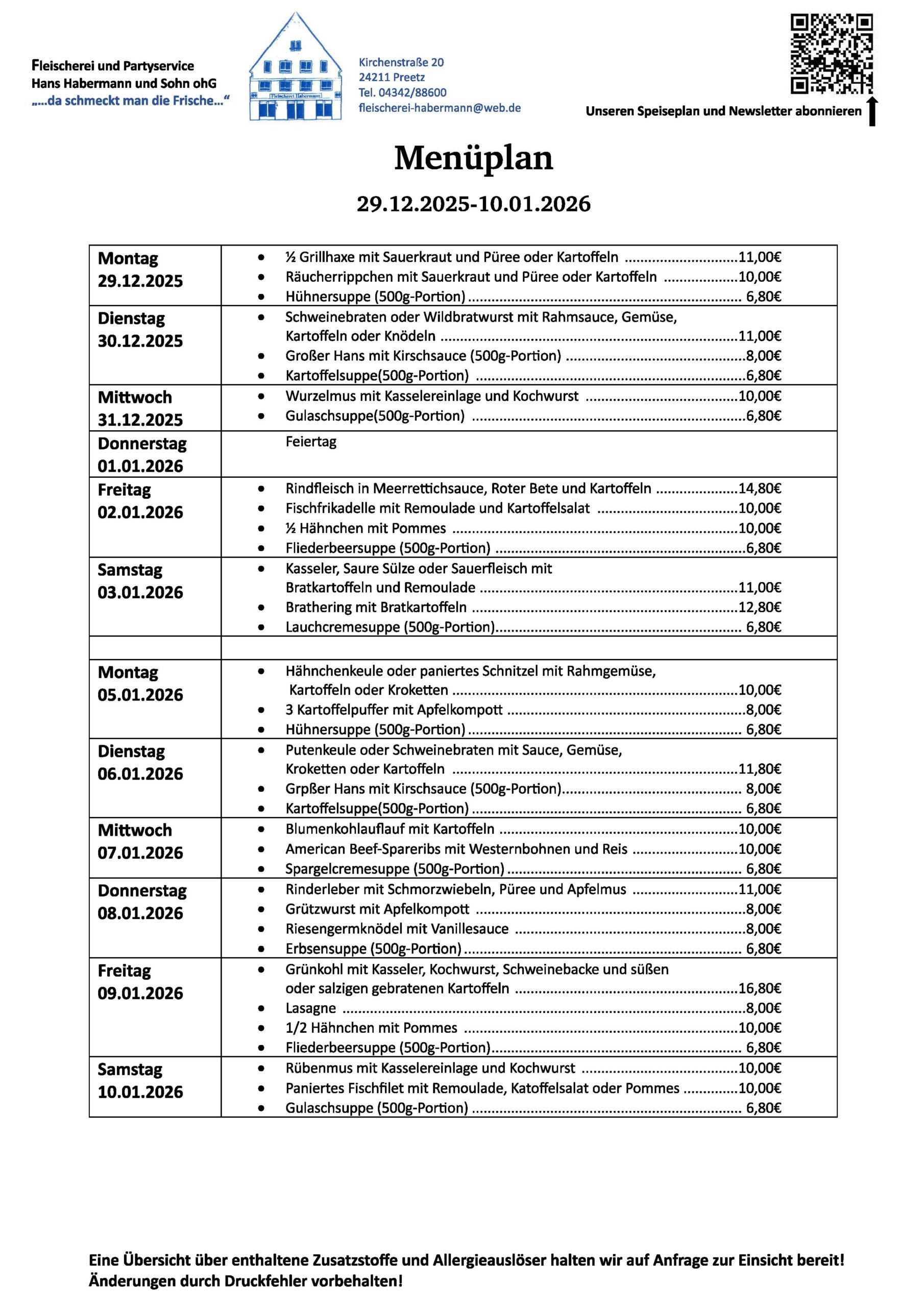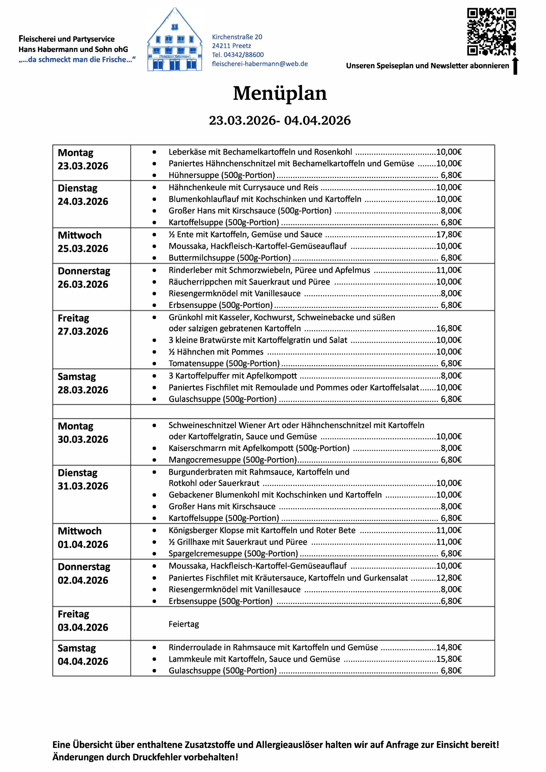 Speiseplan und Anbebote Newsletter abonnieren: