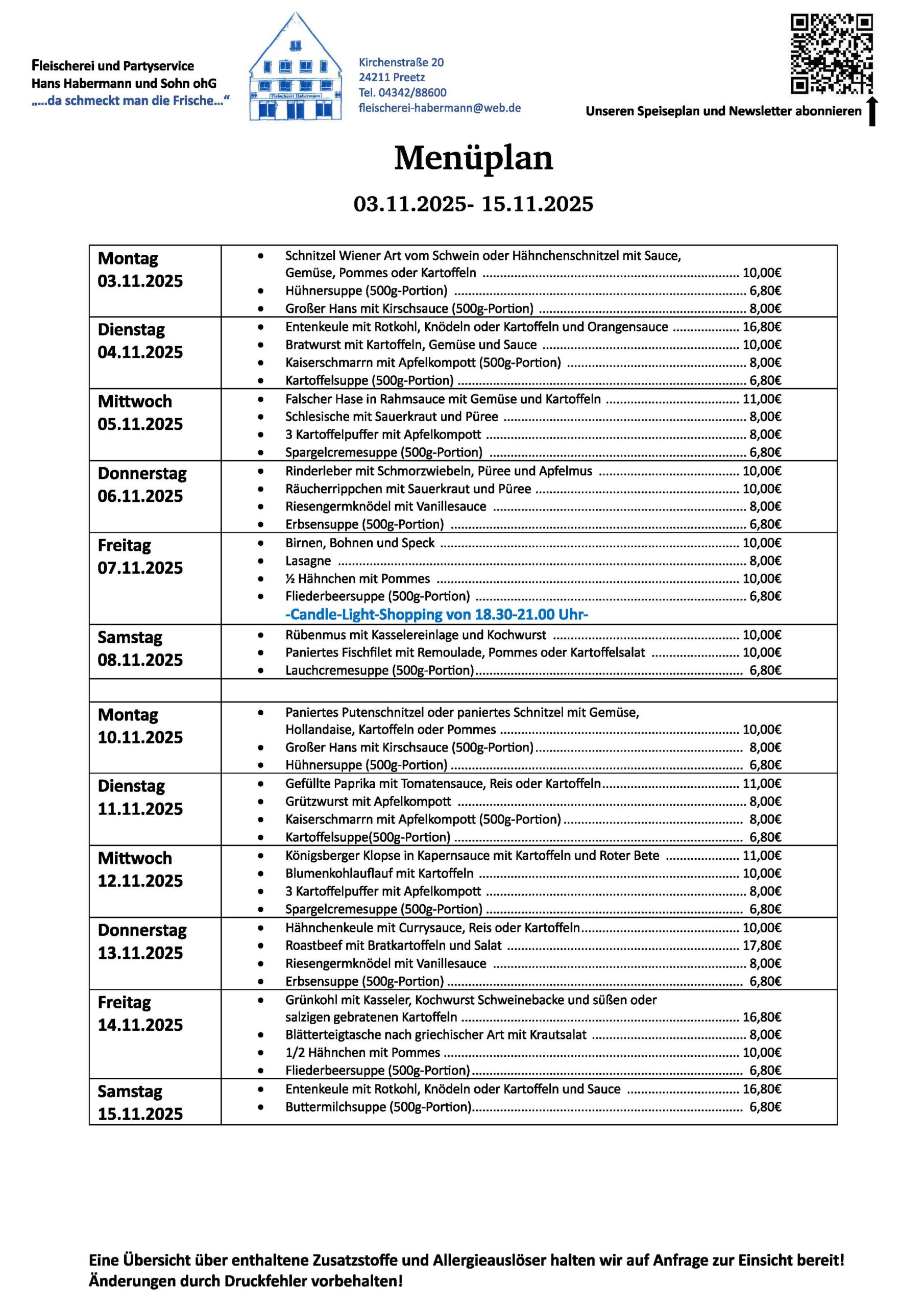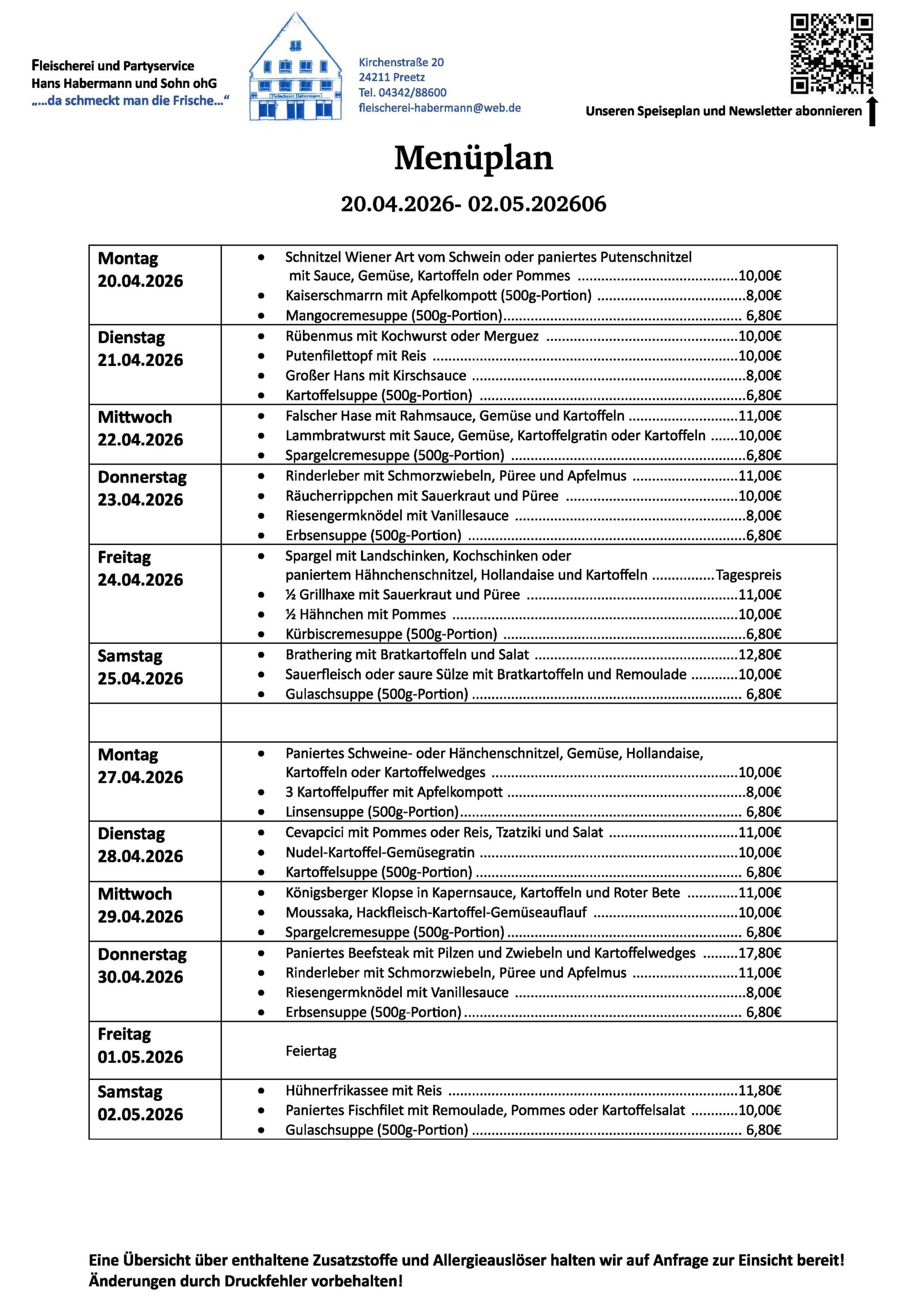Speiseplan und Anbebote Newsletter abonnieren: