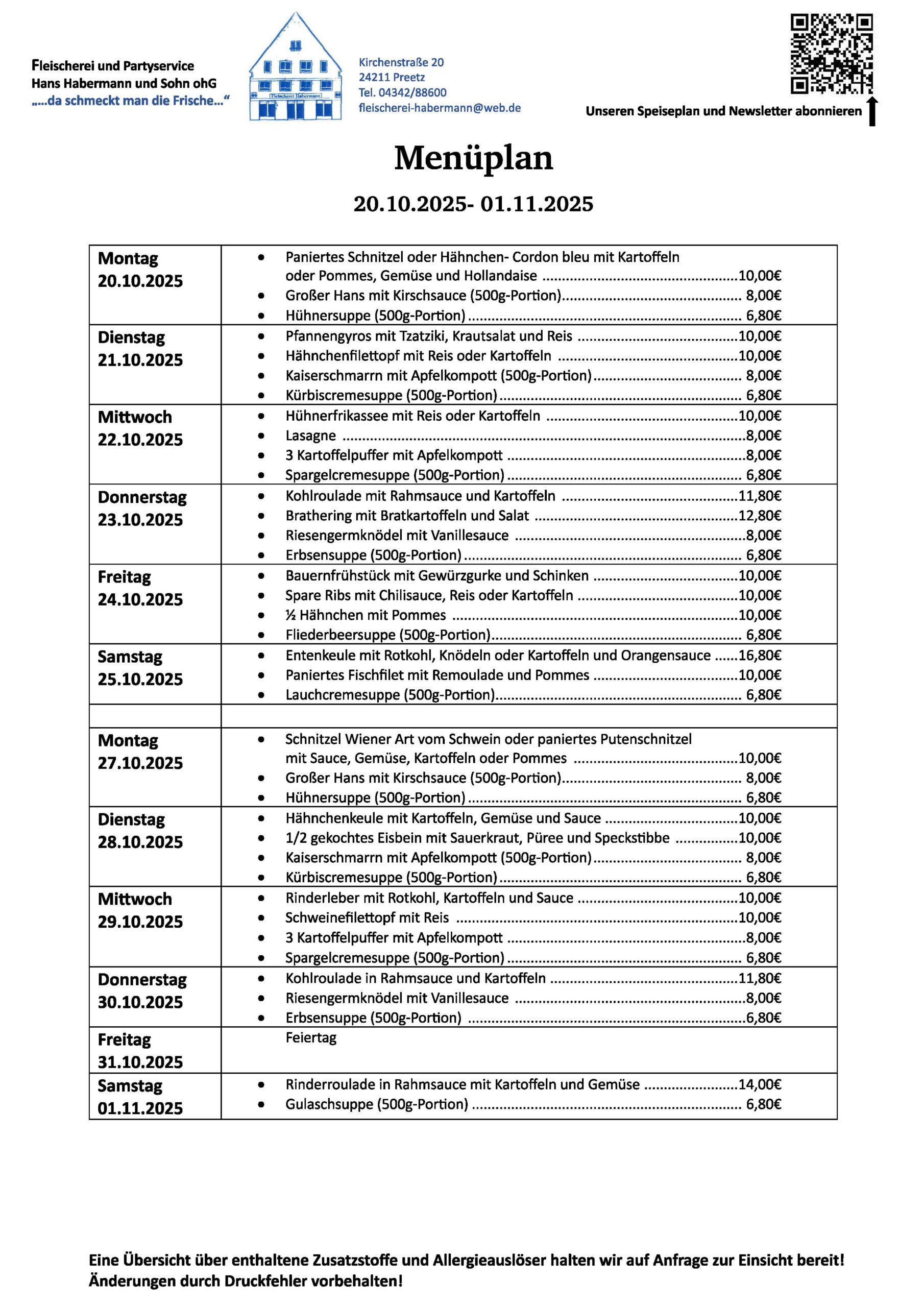 Hier finden Sie stets den aktuellen Speiseplan. Wir kochen täglich frisch für Sie, mit guten frischen Zutaten sowie mit Liebe und Professionalität.