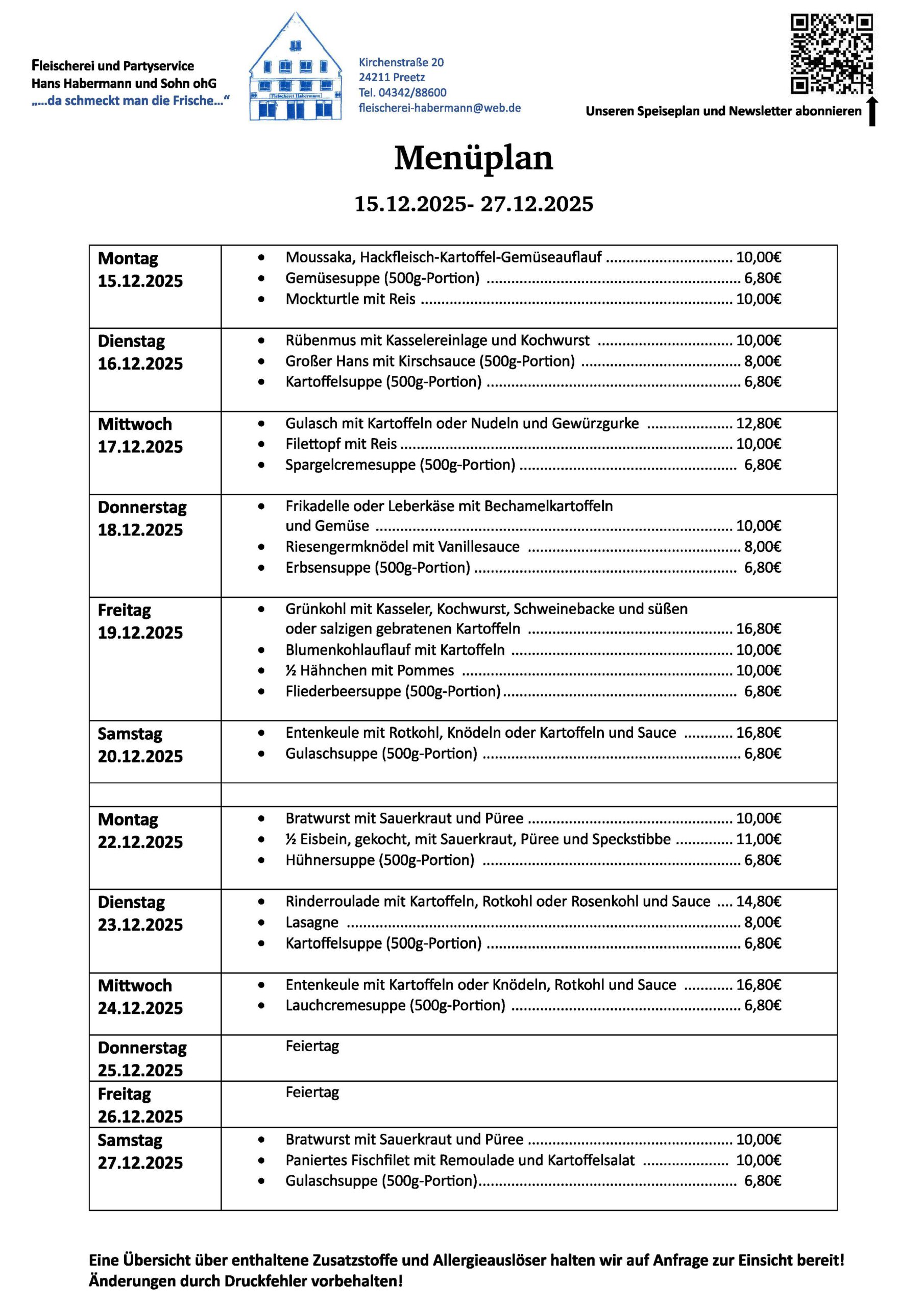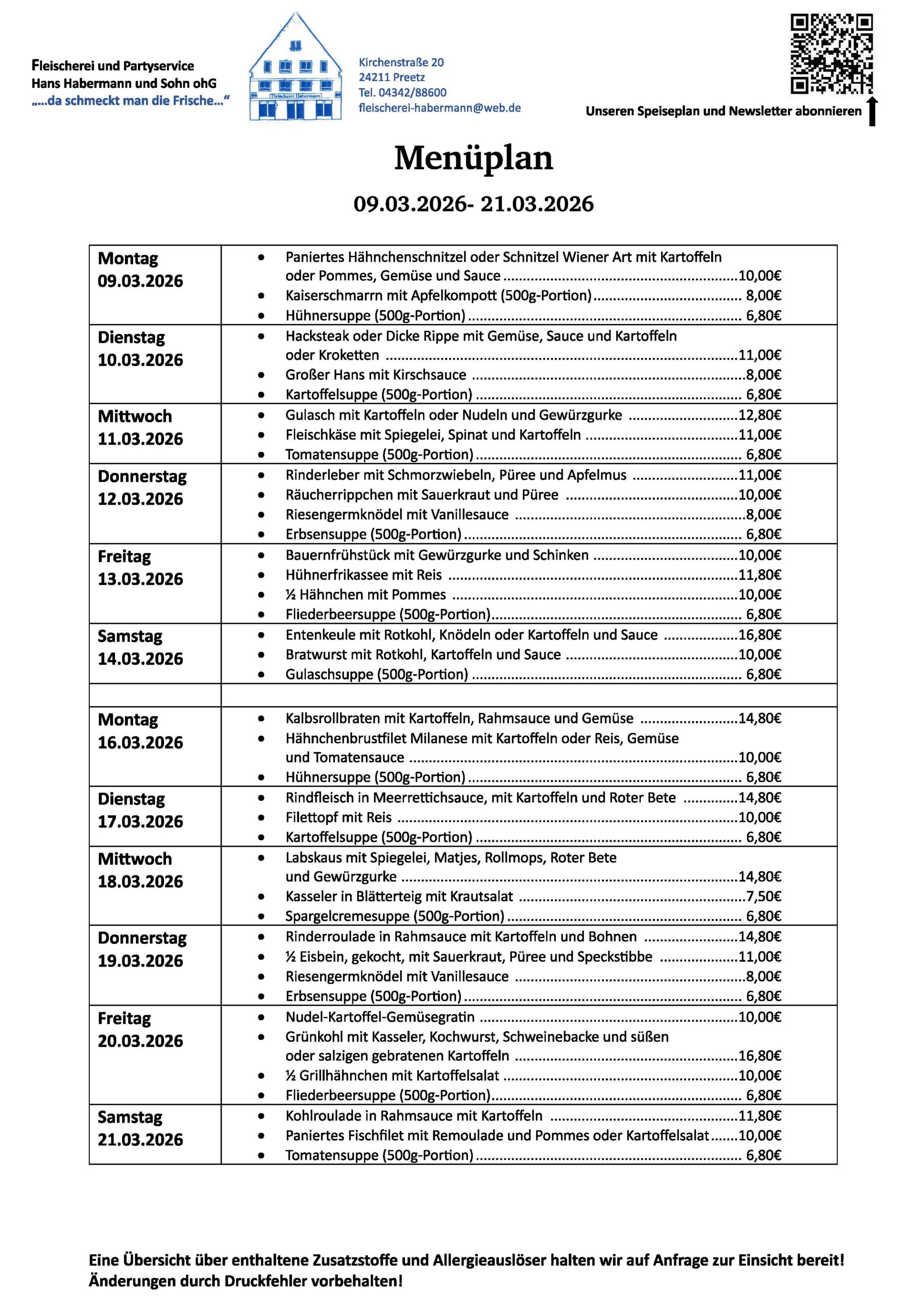 Speiseplan und Anbebote Newsletter abonnieren: