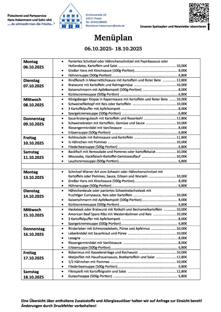Speiseplan 6.10.2025-18.10.2025 Menü